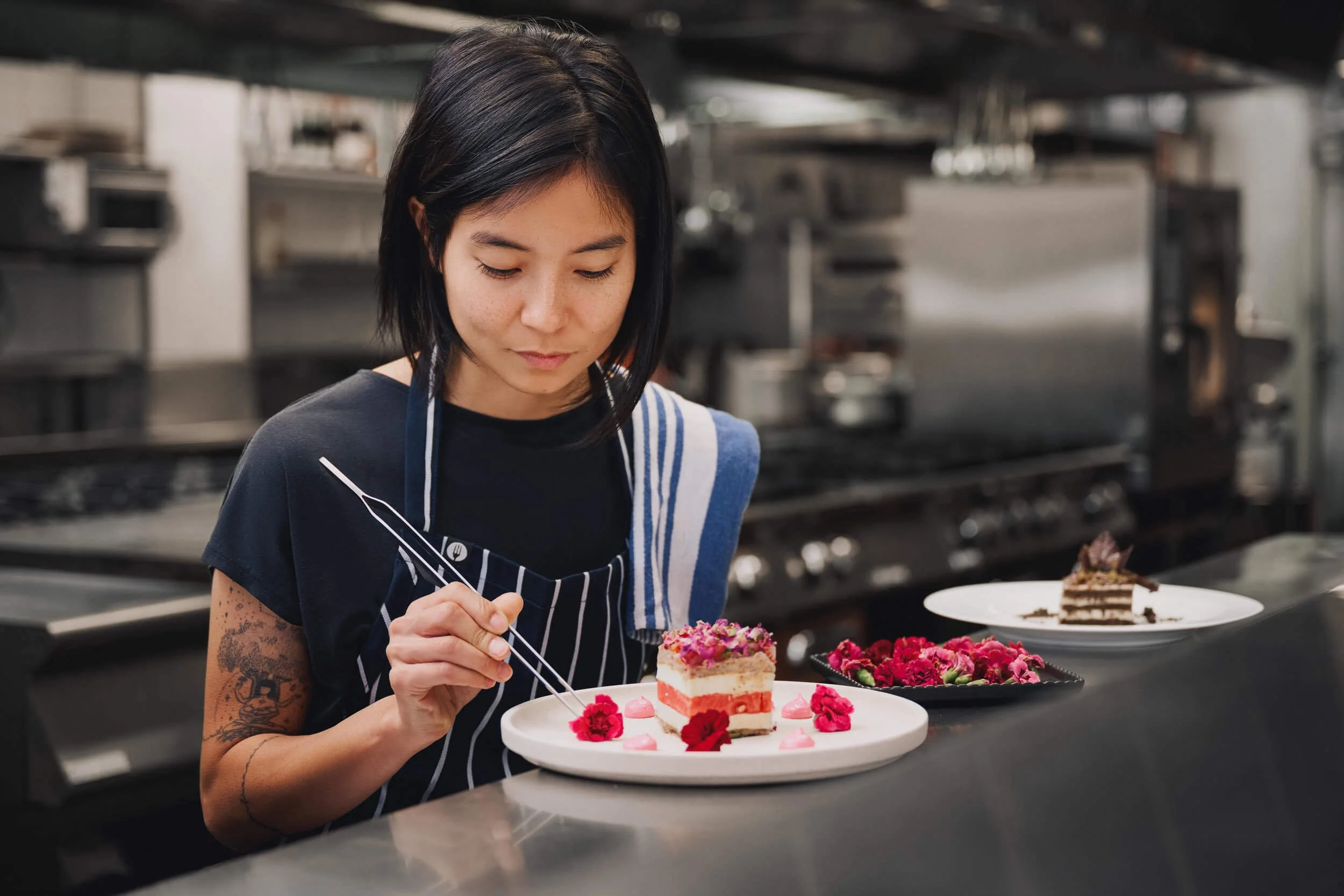For these shoots we shot in a real restaurant kitchen as well as in Comcater's showroom. Each location had its challenges; however, my approach was to try and keep the imagery looking realistic to create a genuine aesthetic. I achieved this by lighting the room to complement the existing lighting and then sculpting one light onto the faces and food.